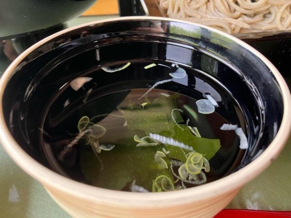 天丼と手打ちそばを堪能した後は、鉄瓶に入ったそば湯をいただきました。まろやかな味でほっこり。