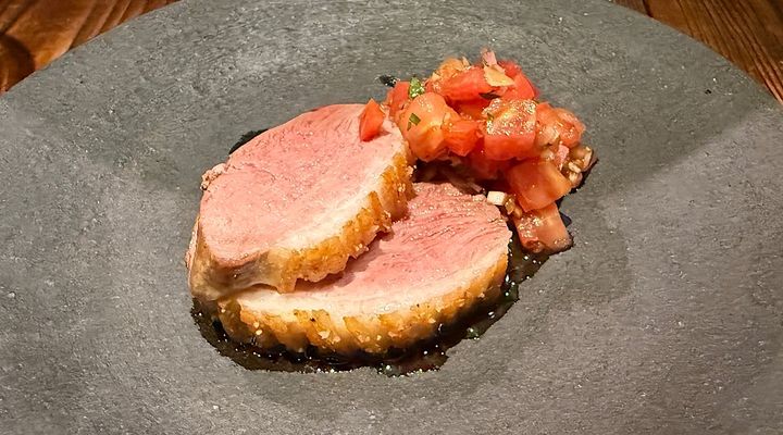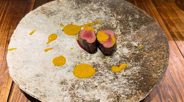 蝦夷鹿のヒレは、マンゴーとミントのソースで頂きます。