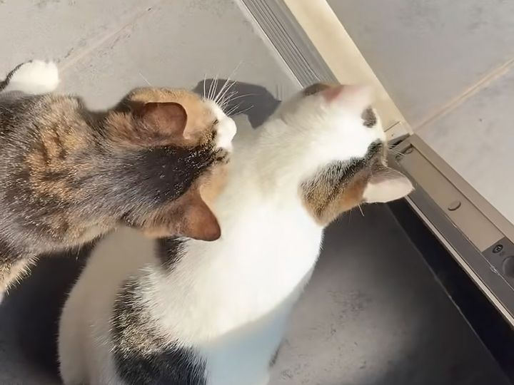 猫「お外で遊ぼうかな〜!」 でもドアの外は暑すぎて
