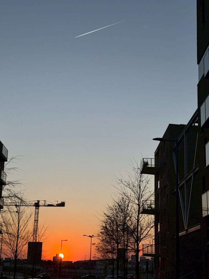 夜、寝る前(と言っても22時頃までめっちゃ明るい!)に、オレンジ色に広がるおいしそうな夕陽を家の窓から眺めて1日が終わる。