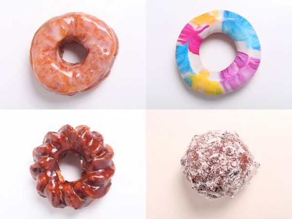 (左上から時計回りに)クロワッサングレーズ、ギャラクシードーナツ、オリーボーレン、カヌレドーナツ