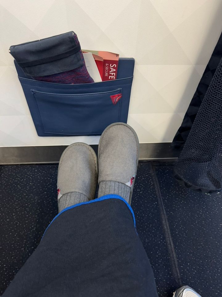 最大約96.59cmの広いシートピッチと調節可能なフットレスト、レッグレストが備えられていて、リクライニングするとスポッと包み込まれるような心地良さ。個人的にこの安心感が大好きで、長時間のフライトも快適です。