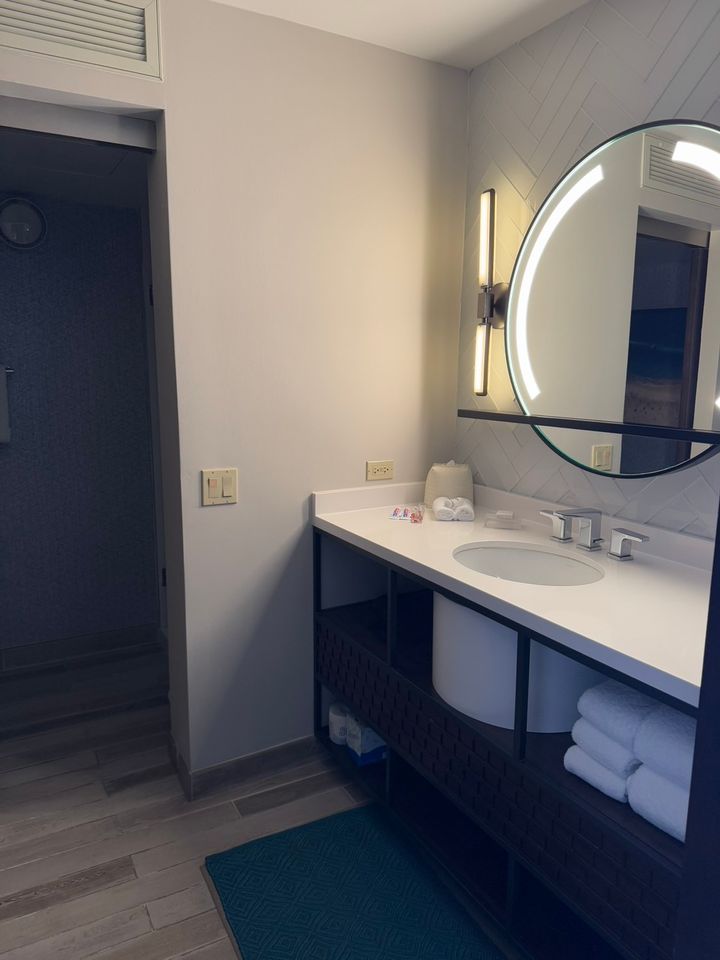 宿泊したジュニアスイートは、ハワイらしいモダンな雰囲気と快適さを兼ね備えた客室で、客室面積は約38㎡(413平方フィート)で広々。内装はハワイの海をイメージしたブルーを基調とし、明るく開放的。