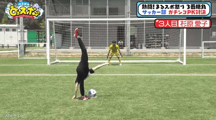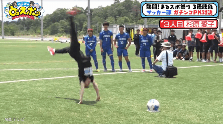 リオデジャネイロ2016オリンピックの女子体操で活躍し、10月の世界体操選手権日本代表に内定している杉原愛子選手が、サッカーの強豪校とガチンコPK対決をすることに! なんと杉原選手は、ボールを蹴る前にY字バランスポーズを決め、さらには側宙、バク転と超絶アクロバット技を連続披露! 美脚をピンと伸ばしてシュートした結果は……!?