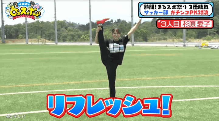 3. 美脚際立つY字バランスポーズからのアクロバティックシュート! 25歳体操女子オリンピアンにぺこぱ「技術点があれば10点」