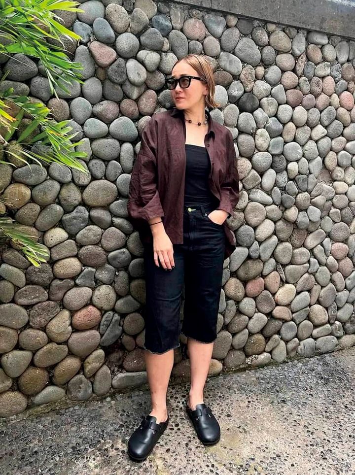 K あと、シンプルなんだけど目を引く人って、色使いが上手なことが多い。ハーフパンツを大人っぽいムードではきこなしている鮫島さん❺や浅子さん❻は、シューズ選びのバランスもいいんだけど、ブラックとブラウンの合わせ方が素敵。
