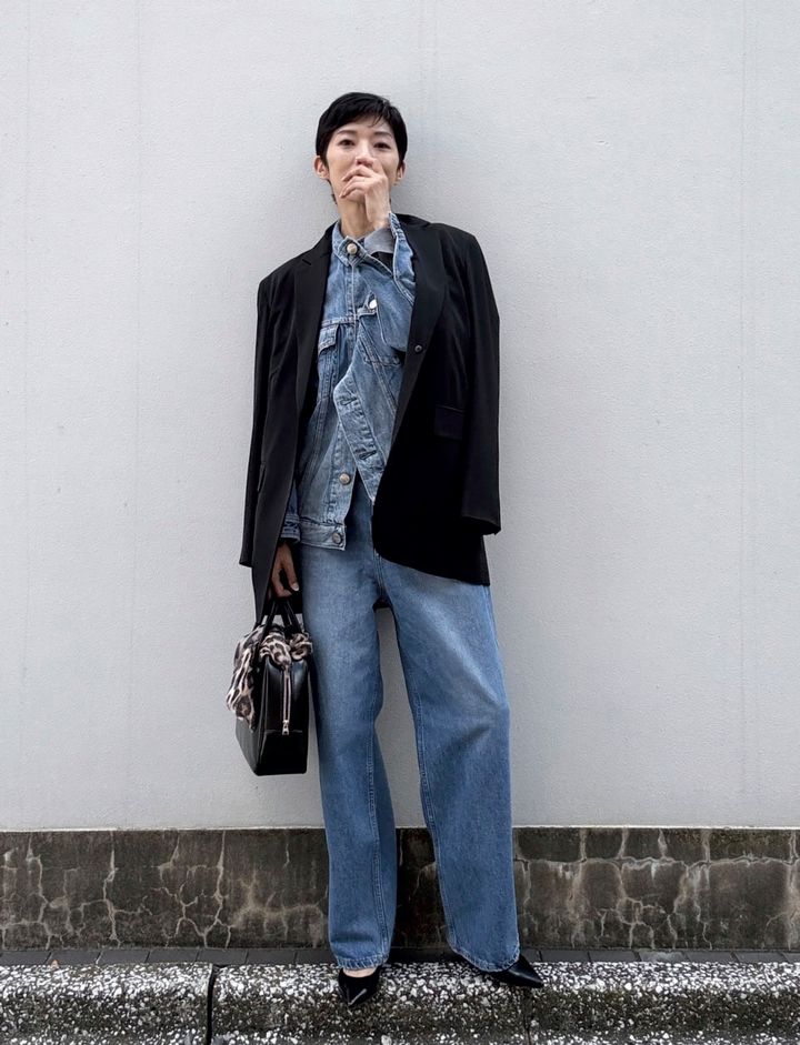 K そうだね。根本さん❶のデニム×デニムにテーラードジャケットなんて、まさに、って感じ。カジュアルななかにきちんと感のあるアイテムをバランスよくMIXしていて本当にかっこいい。