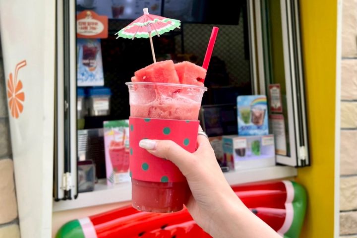 マジックアイランドには、可愛くておいしいジュースや軽食などを販売するフードスタンドがたくさん。食べ歩きを楽しみながら、テーマパークならではのグルメも満喫できます。