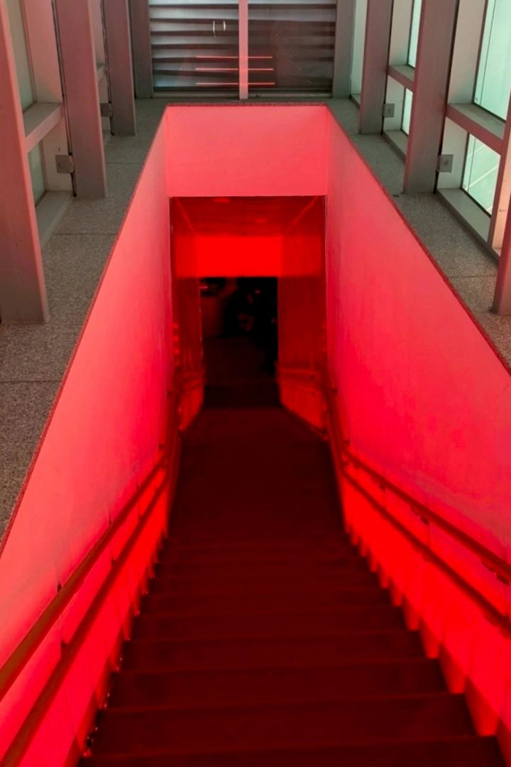 会場に足を踏み入れると、まず目に飛び込んでくるのは、鮮やかな赤に染まった階段。一段降りるたびに、ENHYPENの世界へ吸い込まれていく感覚に。