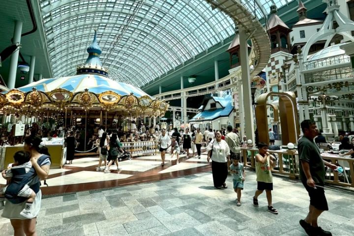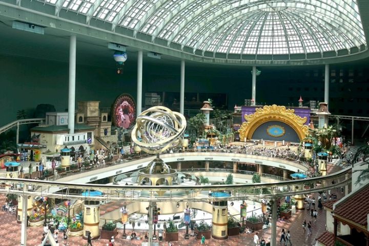 世界最大級の屋内テーマパークとして知られ、天気や気温に左右されずに一日中楽しめるのが魅力。美しい内装と異国風の街並みは、映え写真の撮影も叶います♡