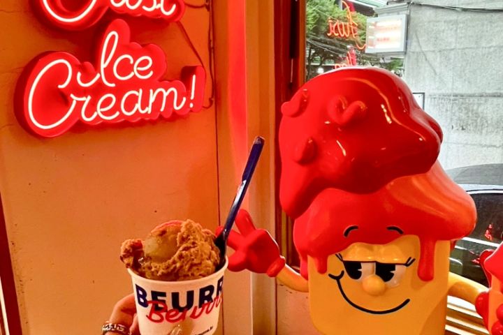 フランス産の乳脂肪82%バターで作っているアイスクリーム屋さんで、シングルサイズでも十分満足できる量と、韓国の伝統菓子・薬菓が入っているのが特徴。