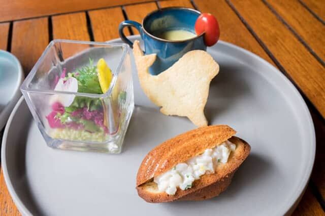 ▲「小笠原の塩マドレーヌ ホタテ貝のタルタル」