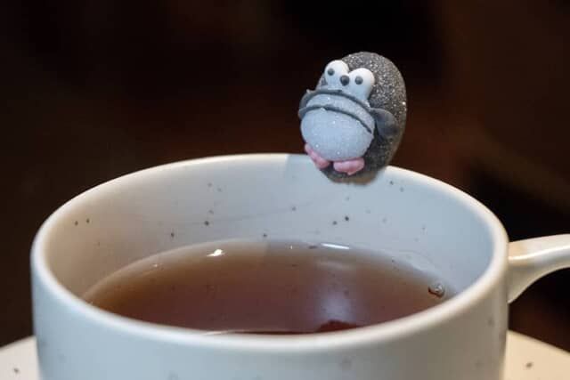 岩場にいるペンギンは、すみだ水族館で売っている「ちょこんとマゼランペンギンシュガー」。紅茶やコーヒーに溶かして砂糖として使えます。コップの淵に座らせることもできるので、撮影にぴったり。ドリンクはコーヒーや紅茶など17種類がフリーフローで楽しめます。