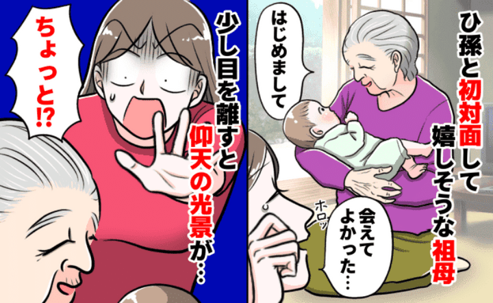 ひ孫との初対面を喜ぶ祖母「ちょっと、何してるの!?」ふと手元を見て驚愕!目を疑う祖母の行動とは