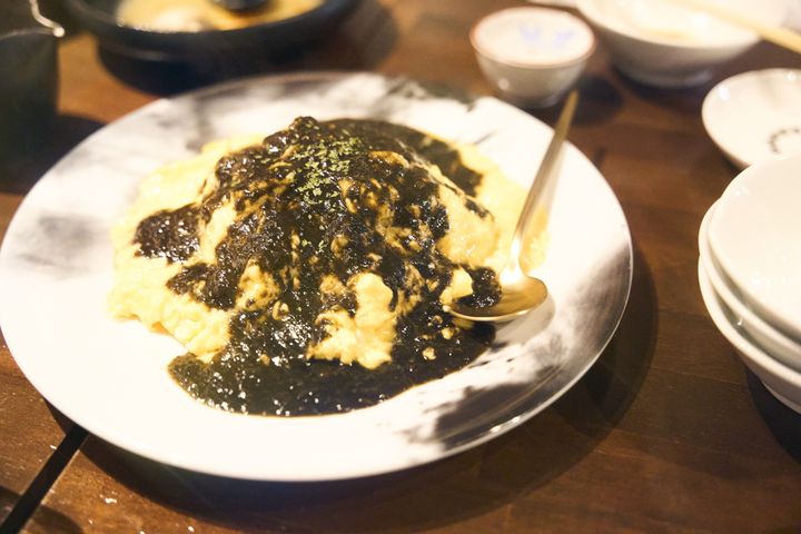このお店のイチオシ締めの一品は、黒オムライス(1320円)。とろっとした舌触りの卵と海苔のちょうど良いバランスで、スプーンが止まらない…!