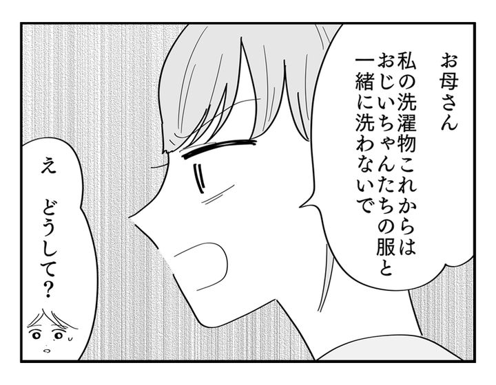 ソノミさんに対し、いきなり驚くような発言をしてきたリアちゃん。その内容は「自分と祖父母の洗濯物を一緒に洗わないでほしい」という主張でした。しかもその理由がなんと「汚い」とか「ニオイが移りそう」とか、ソノミさんにとってはまったく納得できないもので……。いくら反抗期といえど、あまりに失礼な発言は親として見過ごせないかもしれませんね。