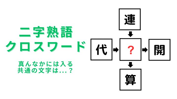 【二字熟語クロスワード】真んなかに入る漢字は?10秒以内に解けるはず!