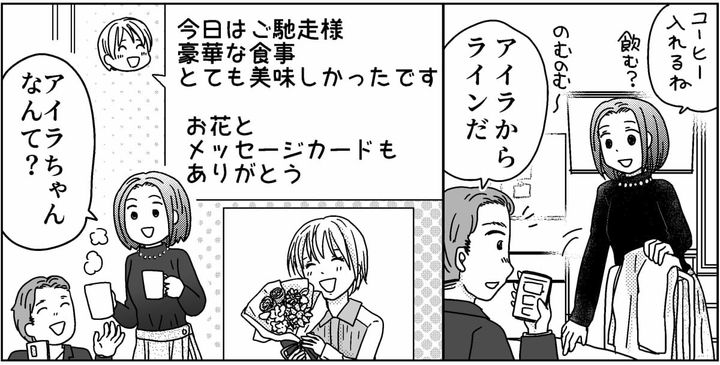 私(チエミ、40代)は夫(トモヒロ、50代)と中学生の息子との3人暮らし。私は初婚で夫は再婚です。夫と前妻(ユリ、40代)の1人娘(アイラ)は、全寮制の中高一貫校を経て、現在は前妻と再婚相手(アキヒサ、40代)と暮らしています。アイラちゃんが通っていた学校とわが家が近かったこともあり、アイラちゃんはよくうちへ遊びに来ていました。それほど私たち家族とアイラちゃんの関係は良好です。私たち夫婦はアイラちゃんの成人祝いとして50万円を前妻に渡し、アイラちゃんと3人で食事することにしました。すると前妻夫妻が急遽食事会に参加したうえ、食事代を全額私たち夫婦に負担させたのです。