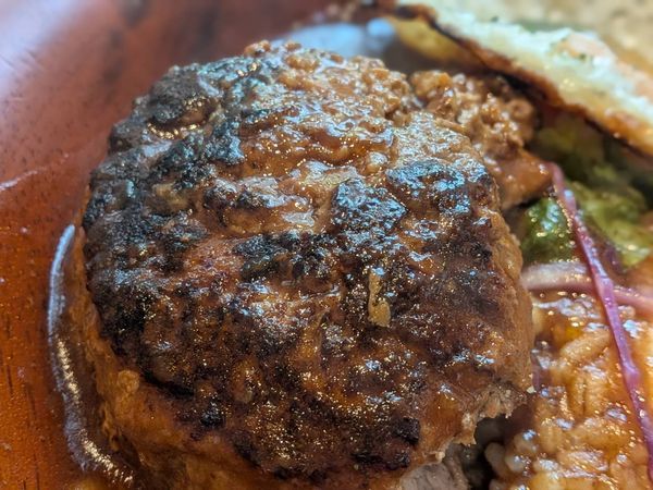 マルンとしたげんこつハンバーグが乗っていて、お肉もみっちり詰まっているので食べ応えがバツグン!