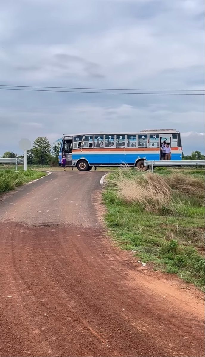 スクールバスはゆっくりと停まり、扉が開くとほぼ同時に女の子が姿を現しました。