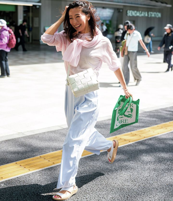パンツ¥16,940(シップス/シップス インフォメーションセンター)ニット¥7,990カーディガン¥8,990トートバッグ¥3,990(すべてアンフィーロ)タンクトップ¥18,700(アールビーエス/レイ ビームス原宿)ショルダーバッグ¥64,900(イアクッチ/イアクッチ 大丸東京店)サンダル¥74,800(パロマ バルセロ/アマン)ピアス¥159,500〈ウノアエレ〉ブレスレット¥22,000〈ウノアエレシルバーコレクション〉リング¥9,900〈ワンエーアールバイウノアエレ〉(すべてウノアエレ ジャパン)