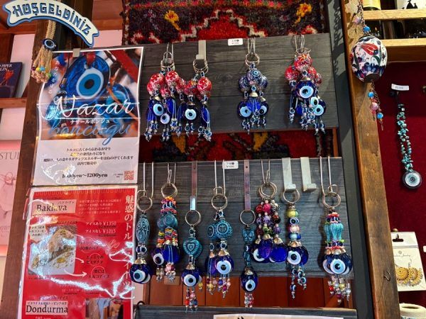 香水瓶やナザールポンジュウのキーホルダーも販売されています。