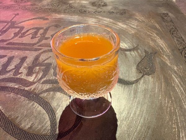コーヒーを飲んだ後、カップの底にコーヒーの粉が溜まるのですが、残ったコーヒーの粉で占います。 コーヒーは無糖か加糖か選べます。 また、コーヒーの後のチェイサーをシロップかジュースか選べます。ジュースを選んだら美味しいアプリコットジュースが付いて来ました。