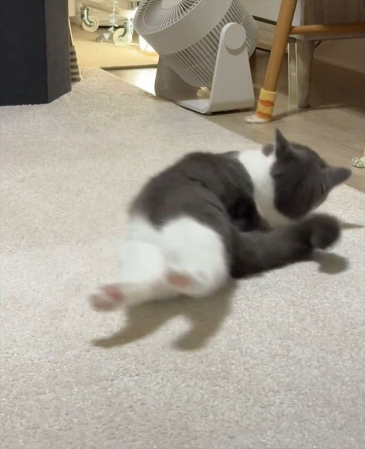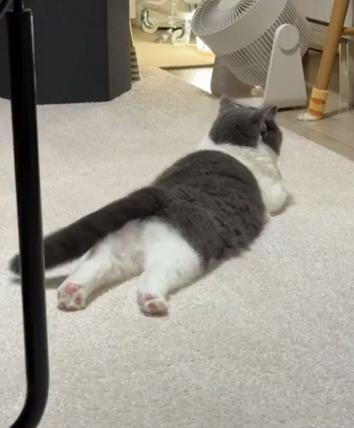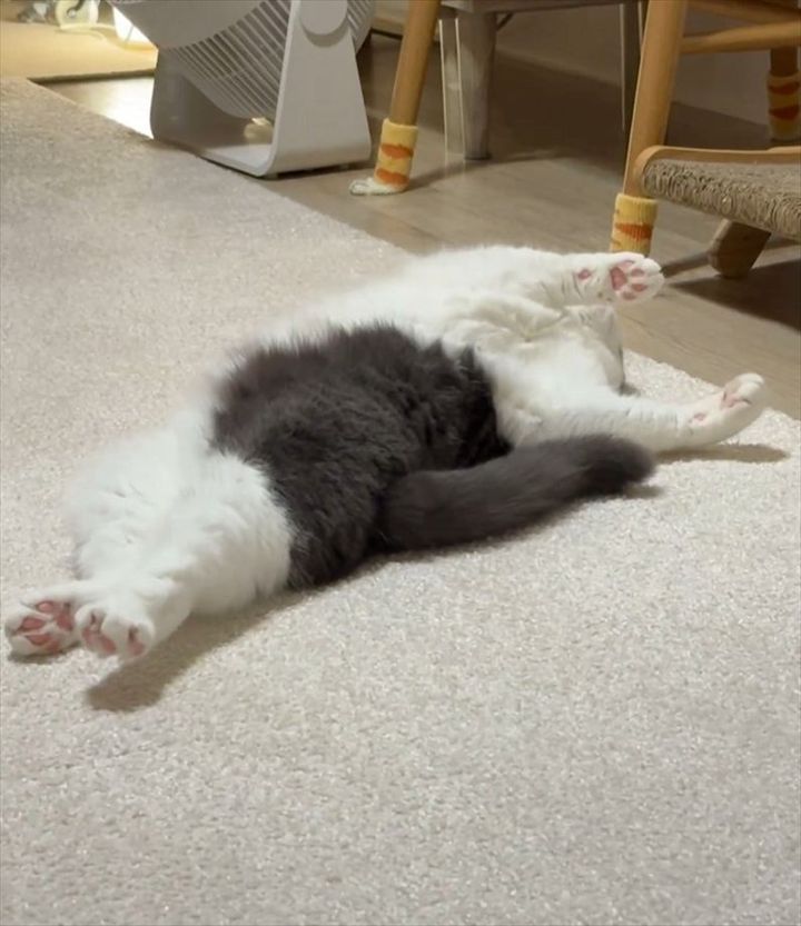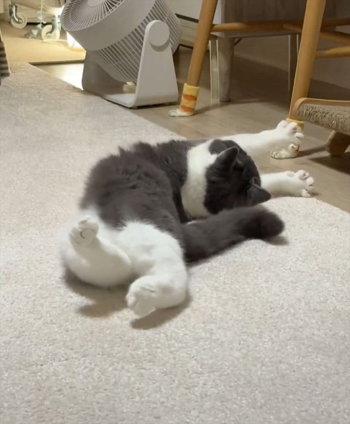 3. ネコが床でゴロゴロ。全てかわいすぎると話題に「神々しいお姿」「投げ出された後ろ足が何ともキュート」
