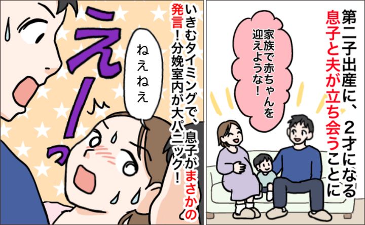 話す言葉も増えて、成長著しい長男が、第二子出産に立ち会うことに。そして、まさに今生まれる!というとき、長男がまさかの発言をしたのです。現場は一時騒然として…