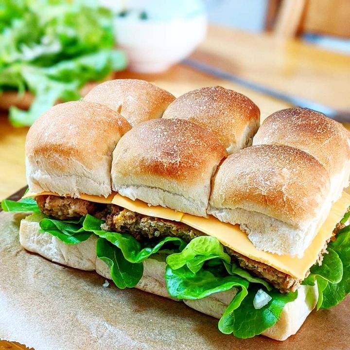 パティやチーズ、レタスを挟めば、ボリューム満点で見た目もキュートな「ちぎりパンバーガー」の完成です。