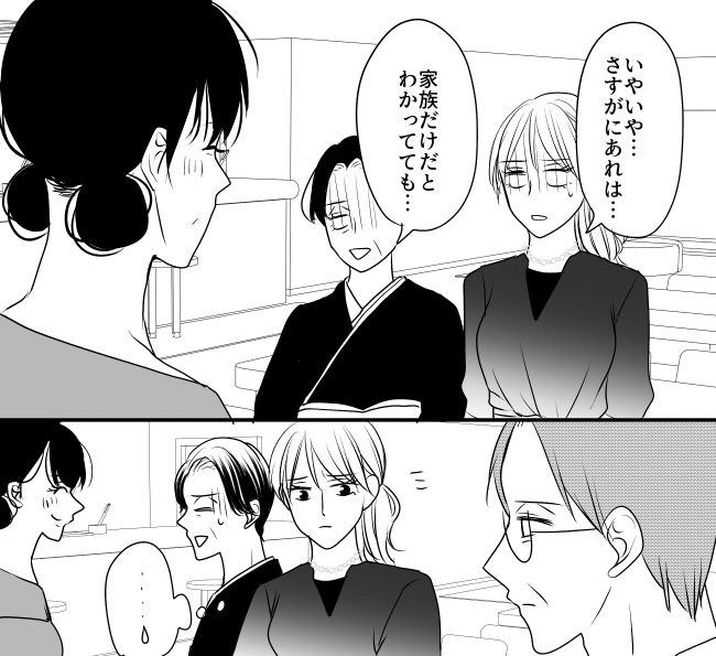その後、りょうの両親は、みほの実家に挨拶へ。しかし、みほの母親の初対面の人と会うときとは思えない馴れ馴れしい態度や、みほの父親は無言という状況に混乱していました。