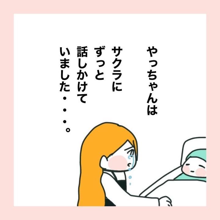 つきママ(@tsukimama34)さんのフォロワーであるスミレさん。妹のサクラさんが「腰の痛み」を訴えているのを心配していました。その後サクラさんは盲腸で入院することとなり、手術をしたあとも体調不良が続いたため再検査をすることに。そこでステージ4の子宮頚がんが見つかり、長い闘病の末に亡くなります。亡くなった妹のサクラさんの親友であるやっちゃんと病室にいました。サクラさんの最後に間に合わなかったことを悔いるやっちゃんを支えていると、主治医から思ってもいなかった言葉をかけられたのです。『子宮頸がんと闘った妹の話』第39話をごらんください。