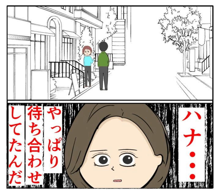 ふみさんが親友のハナと飲み会をした翌日、夫が怪しい行動を見せました。ふみさんは「もしかして2人がこれから密会するのでは?」と直感し、こっそりと後をつけることにしました。