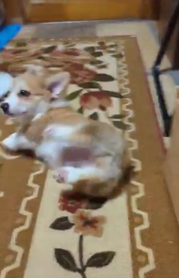 3. 二足歩行からコテンと倒れたコーギー。「失敗してませんが?」という雰囲気を醸し出す愛らしい姿が話題に「受け身が素晴らしい」「最高です」