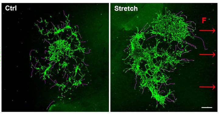 まるで“見えない手”に導かれるかのように、神経突起が正しい方向に向かって伸びていったのです。