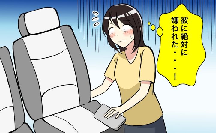 シートについてしまった経血の汚れはきれいに落とすことができました。しかし、「彼の車を汚してしまった」ことと、羞恥心とでショックで……。「ナプキンを替えないと」と思っていた時点でなぜ少しでも時間を見つけてトイレに行っておかなかったんだと反省しました。