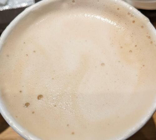 アラビカ種100%のドリップコーヒーにスチームミルクを1対1で合わせ、上部にフォームミルクをのせたコーヒーです。コーヒーは日替わりのドリップコーヒーを使用しているので、その日によって味わいが異なるのも楽しみの1つです。また、カフェミストはすべてのミルクが無料で変更できるのも嬉しいポイント。ブレべミルクでも無料で変更できるのです。