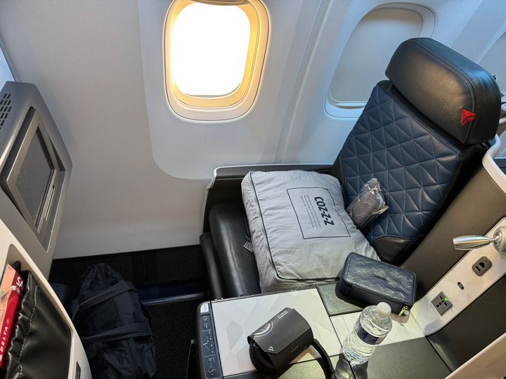 いざ、搭乗!のビジネスクラス「デルタ・ワン」を利用しました。全席通路に直結しており、快適性が確保されています。