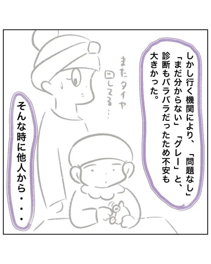 しかし、行く機関によって「問題なし」「まだ分からない」「グレー」と診断もバラバラだったため、不安も大きかった時期でした。そんな時に他人から、