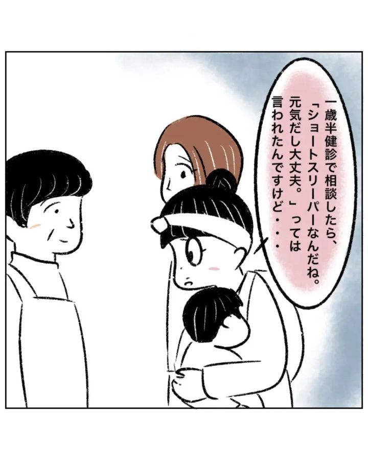 そして「一歳半健診で相談したら、『ショートスリーパーなんだね。元気だし大丈夫』とは言われたんですけど・・」とまるさんが不安そうに話すと、