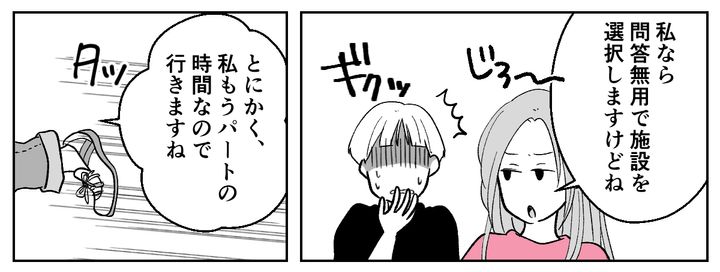 サナエさんは「私なら問答無用で施設を選択します」と言い残し、パートに行ってしまいました。