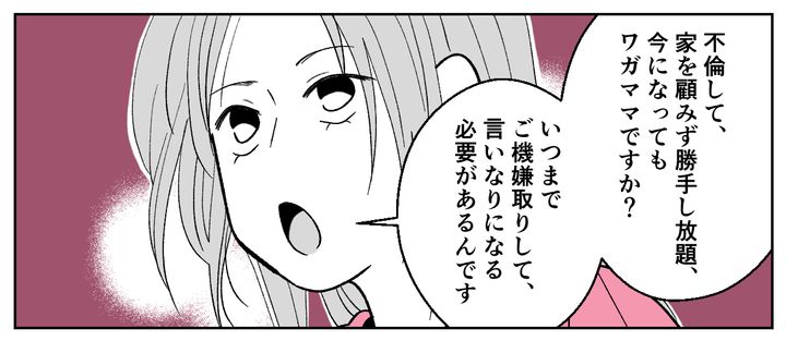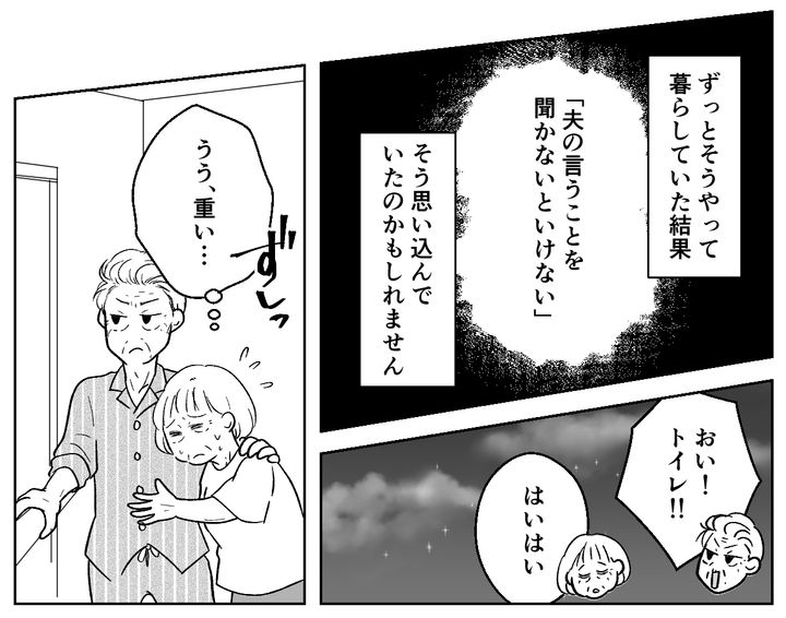 たしかに夫はこれまで、不倫したり家を空けたりと好き勝手していました。体が動かなくなってもワガママ放題の夫に辟易していましたが、無意識にそんな夫のご機嫌取りをしていた自分にはじめて気づいたのです。