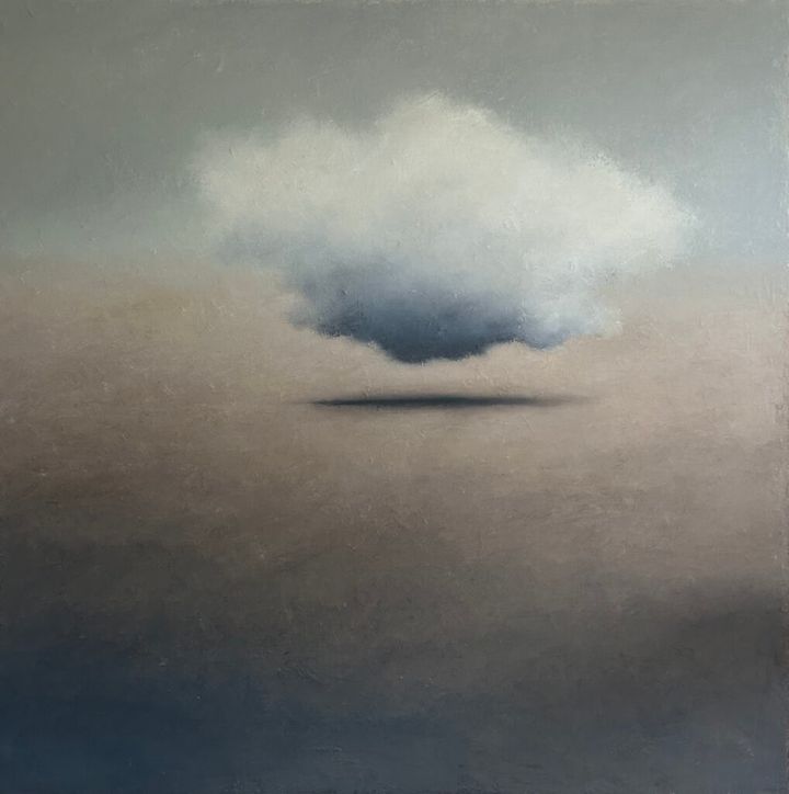 幼少期より、黒漆の下地に朱漆を塗り重ねていく「根来塗(ねごろぬり)」という漆塗りが好きだったという平松さん。彼女の作品もまた、キャンバスに絵の具を塗り重ねて、引っ掻き削り、さらに塗り重ねていくことで生み出されている。これまで何度もモチーフとして描いている「雲」をはじめ、自身の体内に実在する心象風景と向き合い、作品を制作している。