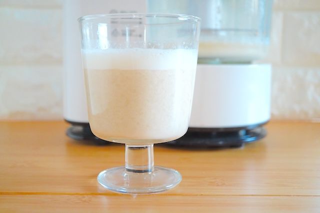 バナナの優しい甘さとアーモンドミルクの香ばしい風味が合っていておいしい! アーモンドミルクがさらっとしているのでしつこさがなく、夏の朝でもすっきり飲めるドリンクになりました。塩が足りないと感じる人は、塩を後からかけると塩味をより感じることができますよ。