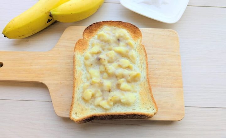 潰したバナナに塩を一つまみ入れて食パンに塗り、トースターで焼いた「塩バナナトースト」。