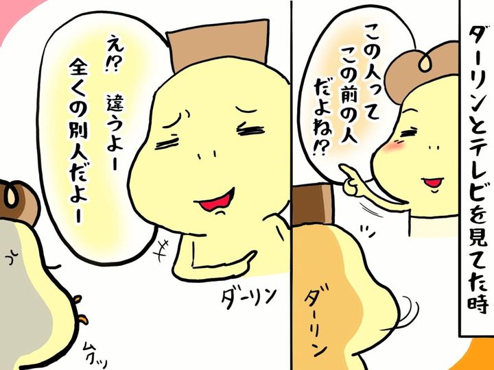 例えば、夫とテレビを見ていた時。「この人ってこの前の人だよね!?」とてる子さんが言うと、夫が「え!?違うよー。全くの別人だよー」と否定。