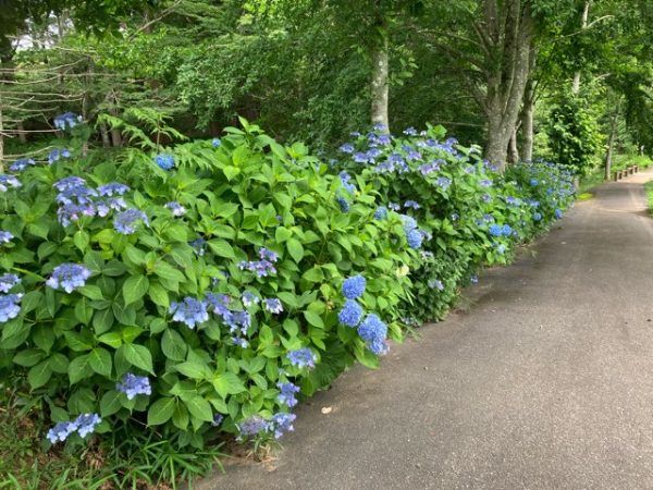 こちらは大人の背丈を余裕で超えるあじさい群。むせかえるようにたくさんの花がついています。