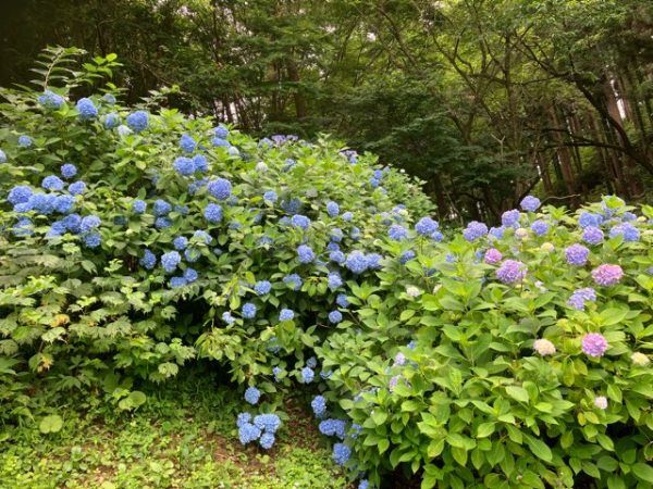 ゆっくりじっくりあじさいを見て回る中、奥の方は花の咲き始めの様子。 あじさいの見頃は例年6月~7月とのことで、今年はこれからとなりそうです。