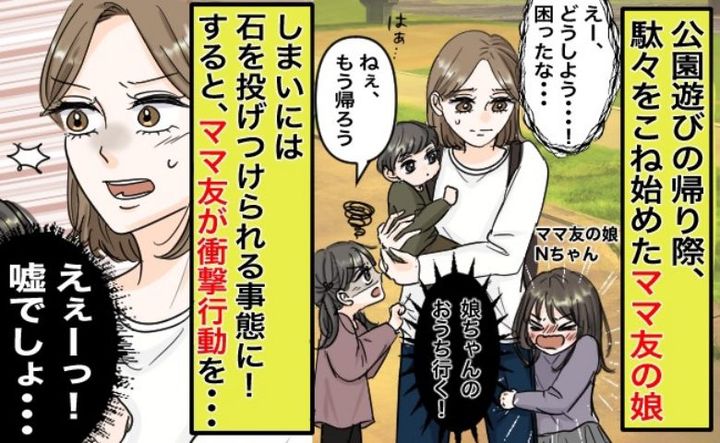 「どうにかして…!」公園でママ友の娘が帰りたくないと大暴れ。石を投げられ…その子のママを見ると…!