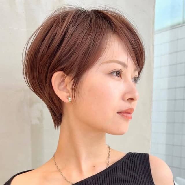 大人世代が気になるのが、顔の輪郭やフェイスライン。その点、コンパクトショートヘアなら、自然に小顔効果を演出できます。